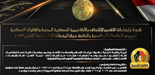 بداية من 15 يوليو ..فتح باب التقديم لقسم الضباط المتخصصين بالكلية الحربية لخريجي حقوق - تجارة - تربية - علوم -أداب - زراعة - خدمة اجتماعية- فنون -هندسة