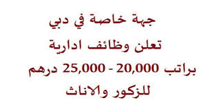 وظائف ادارية في ابوظبي براتب 25,000 درهم بتاريخ اليوم